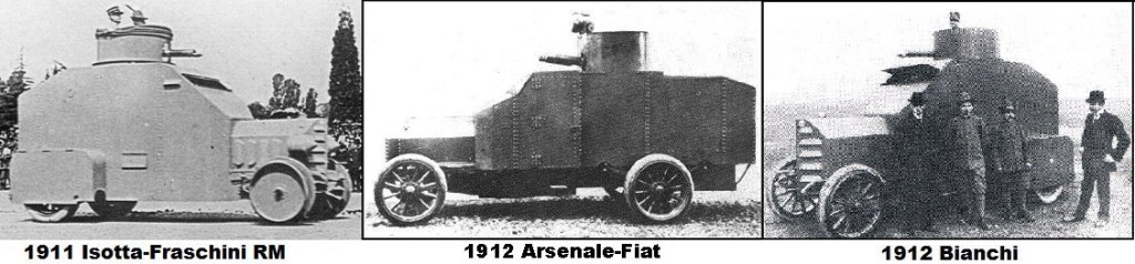 ………………………..Model 1912 – Arsenale copy on Fiat chassis, 1 built. Bianchi copy, 6 mm armour, 30hp engine, 2 built (1912-13)